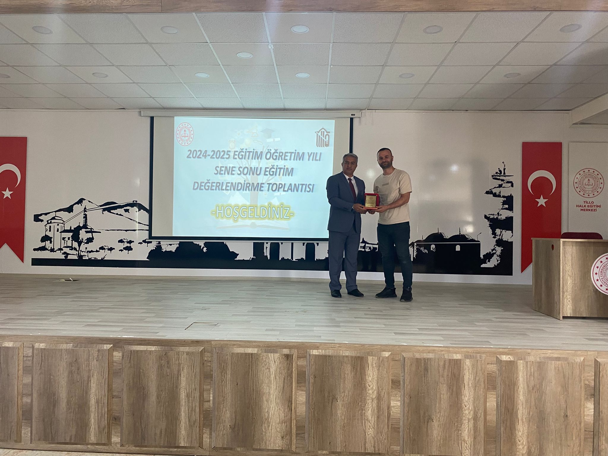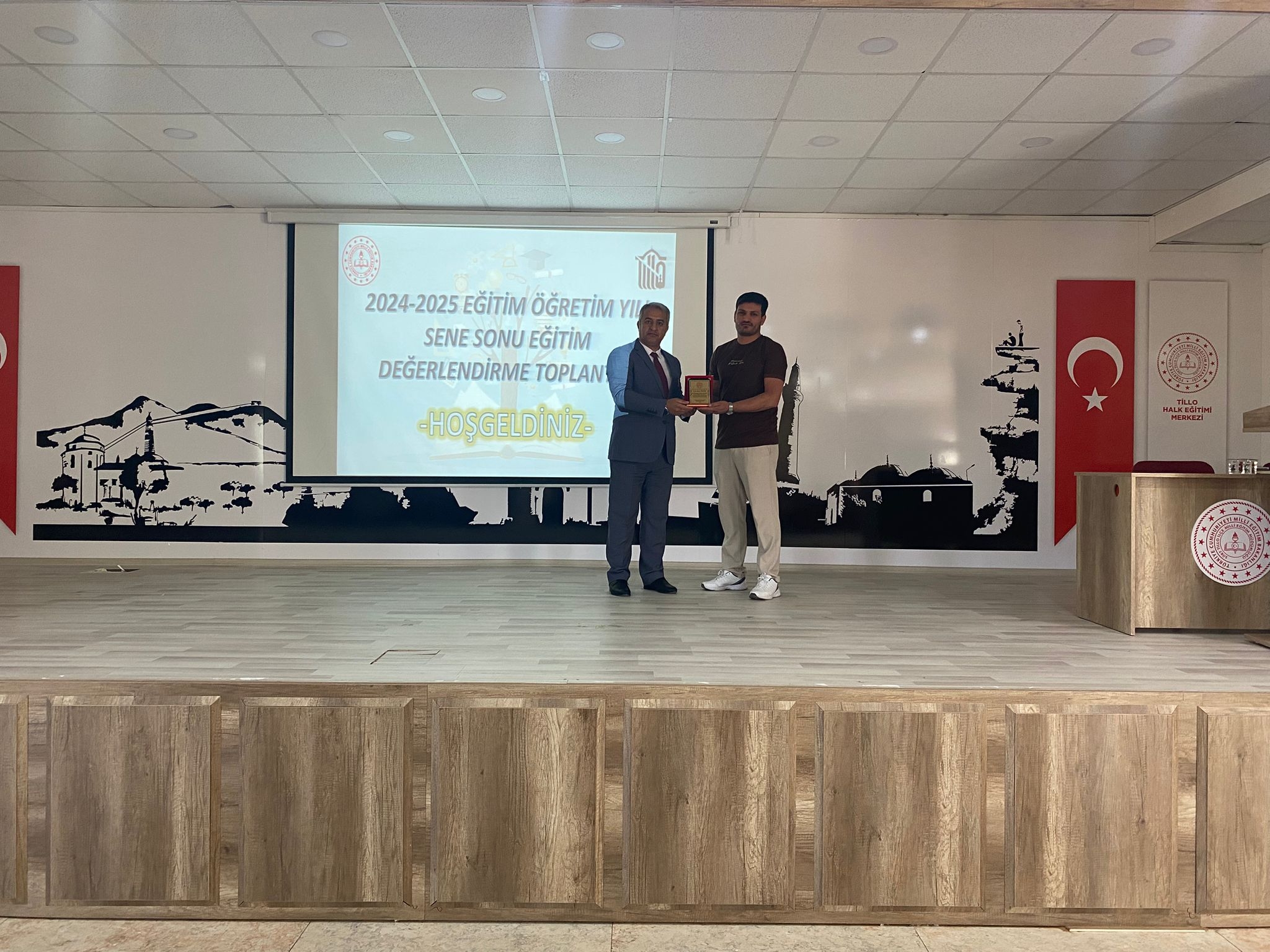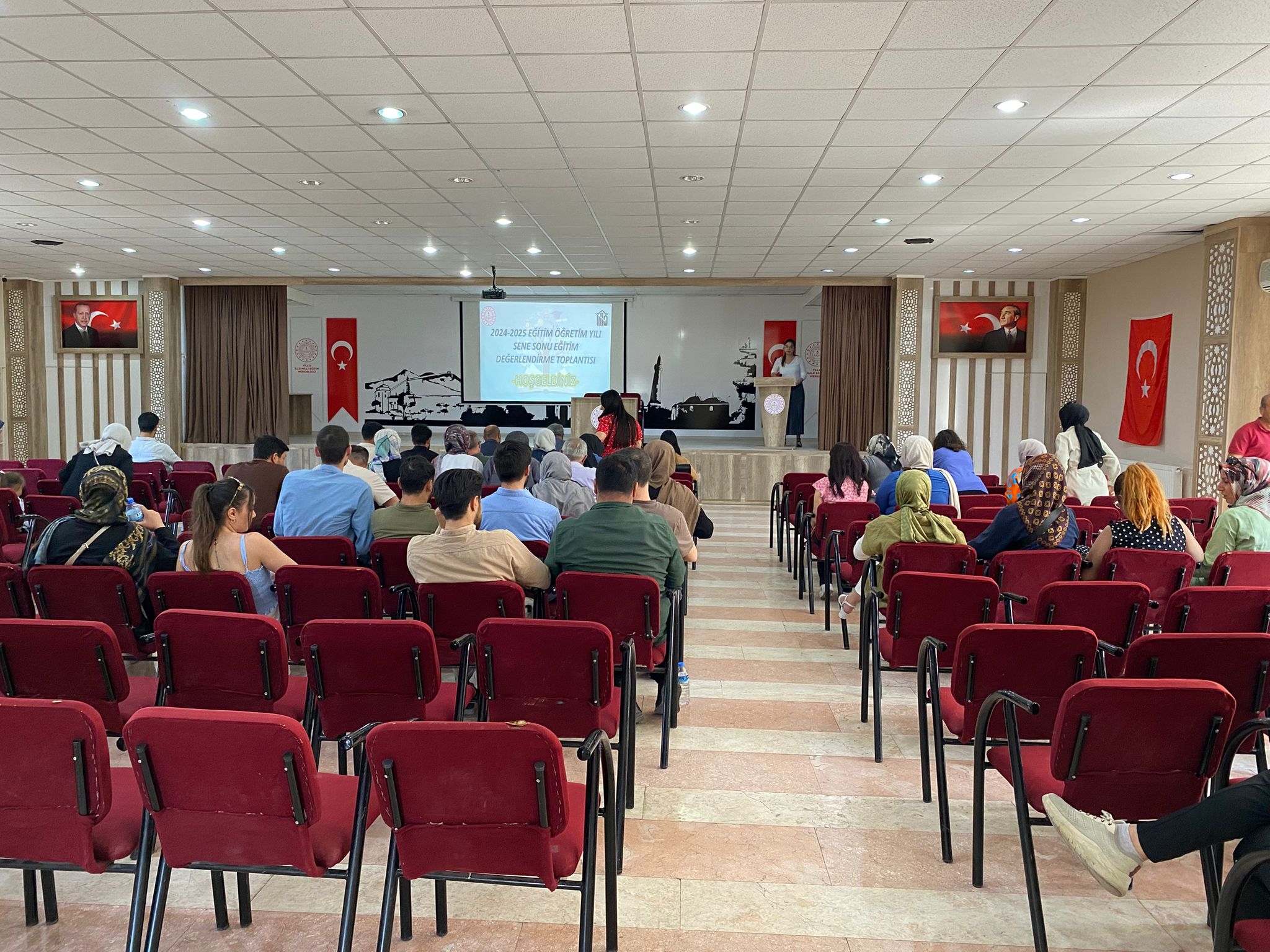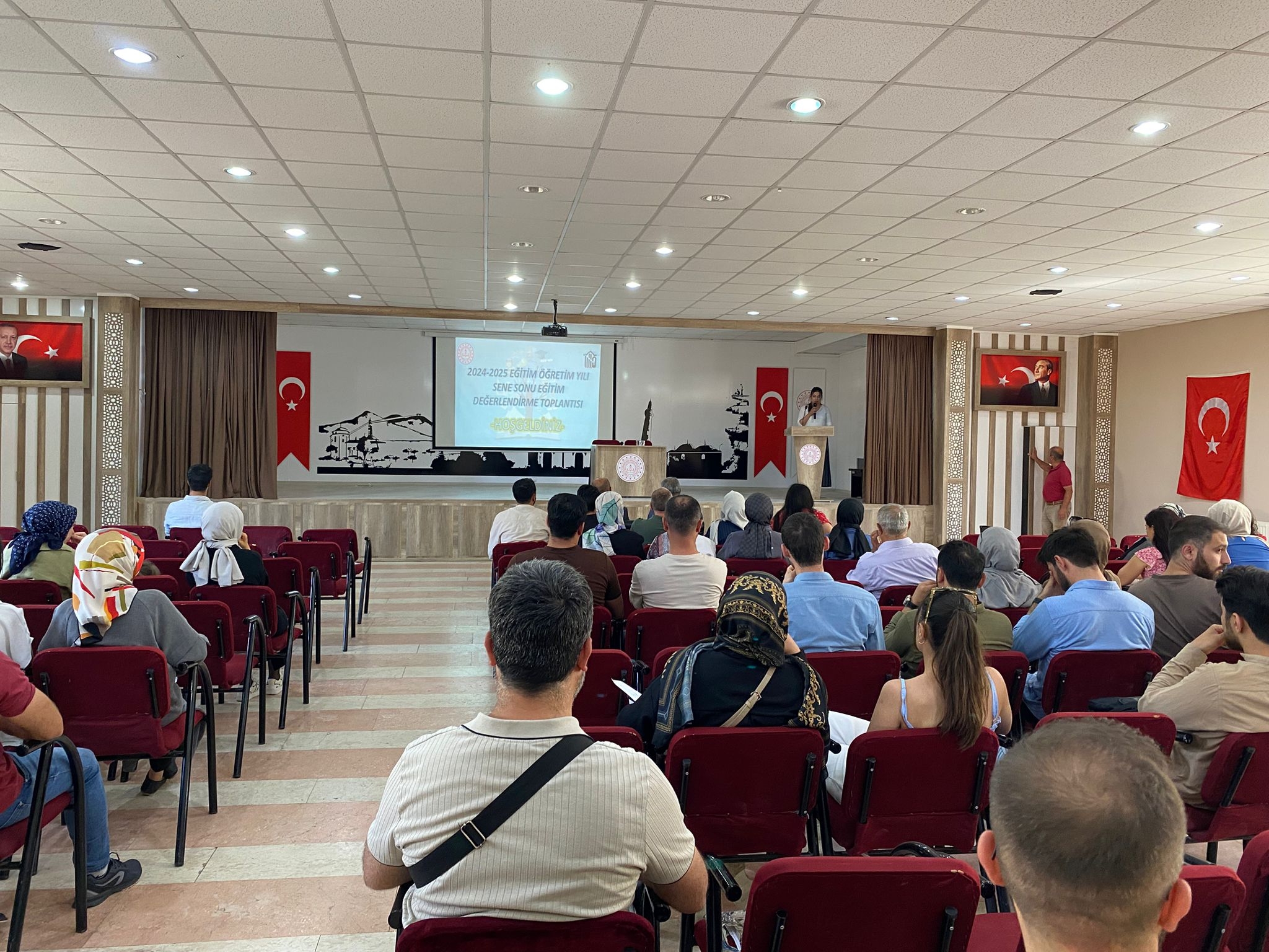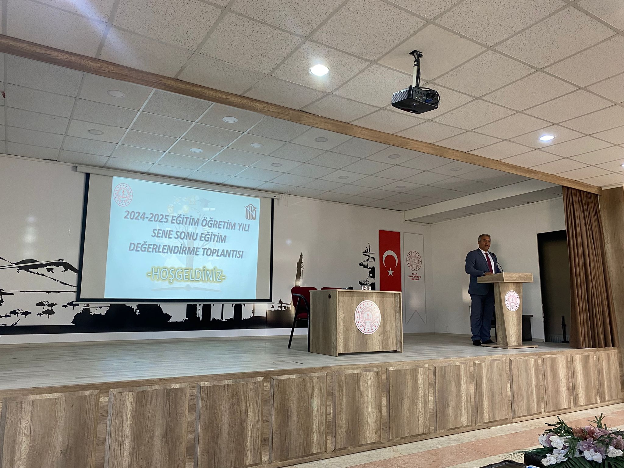 İlçemizde görev yapan tüm okul idarecileri ve öğretmenleri ile yıl sonu değrlendirme toplantısı yapıldı.İbrahim Hakkı İlkokulunda zümre toplantısını yapan öğretmenler daha sonra yıl sonu değerlendirme toplantısı için İlçe Milli Eğitim Müdürümüz Mehmet Saraç BATUR ile bir araya geldiler.İstiklal Marşı ile başlayan toplantı,yıl içerisindeki çalışmaların değerlendirilmesi ile devam etti.Toplantı sonunda yıl içerisinde gayretli çalışmalarda bulunan öğretmenlere plaket verildi.